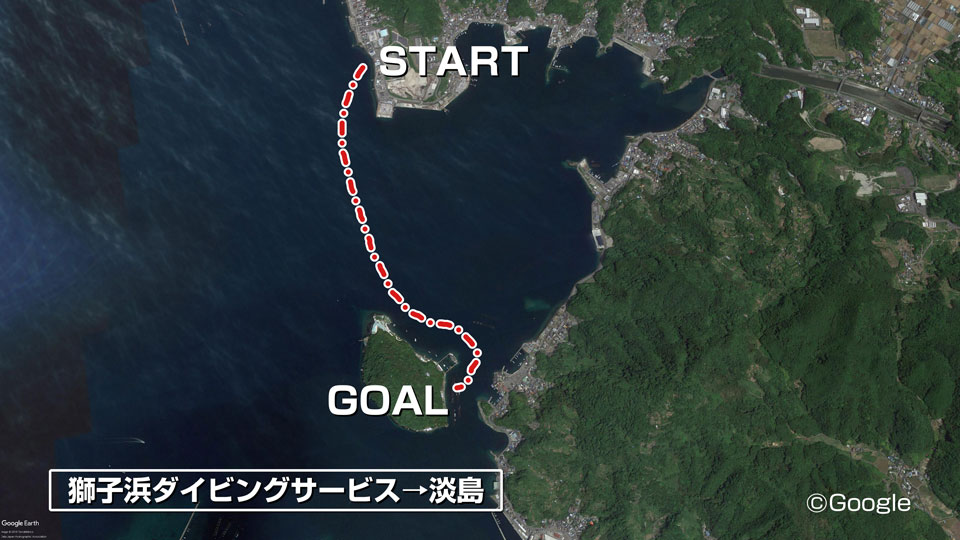 静岡県 沼津淡島の獅子浜ダイビングサービスから淡島を目指します。
