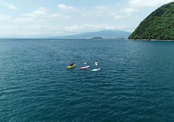 富士山と緑豊かな沼津の景色を眺めながらSUPを楽しむことができます。